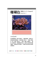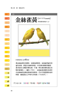 本書舉出許多日本工業規格中,做為參考值而定義的色彩名稱,也一併標示曼塞爾顏色系統、系統色名法(註:以科學的色彩體系〈色相、明度、彩度〉為基礎,利用修飾語來說明顏色)、CMYK值與RGB值,方便重現色彩。