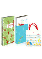★《出發吧,海洋號!》的視覺設計是剖面透視的雙重視覺。兩位作者把慣用的直式窄版格式立起來,畫面以八二法則切割,海面下是主軸佔八成,海面上佔兩成。為了營造海面上下並存的雙重視覺,娃娃屋書常用的垂直剖面透視設計便派上用場了。至於立體場景的設計,兩位作者採用傳統的層景透視概念,也就是利用層層景片間的間距產生立體透視效果。所有層景片固定在將海面場景一分為二的海面底板,而這張底板就是立體紙藝最基本的V摺,功用在於翻頁時把V摺拉撐的同時撐開層景片形成立體場景。不曉得作者的本意是否如此,如果稍微把書合起來一點再打開一點,如此慢慢地重覆開合動作,場景就會像真實海面一樣上下波動。──《立體書王國-楊清貴》