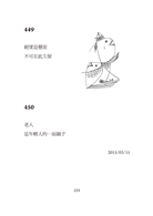 他以短詩傳遞生活、價值與生命,全書以兩行短詩為組,本書共收錄四百六十首。