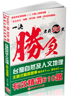 地理科試題常常會以不同的題型或是不同的內容,考相同的地理概念。因此,地理學科的解題方法與技巧,著重於相關概念的融會貫通與理解,而非強記、硬背。本書分為臺灣的自然地理、臺灣的人文地理、臺灣的區域特色、臺灣的觀光資源與維護四大單元。以精選試題搭配詳細解析,讓讀者「知其然,亦知其所以然」,在最短的時間內,建立完整概念,做最有效率、更完整的學習。