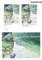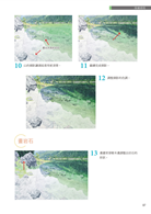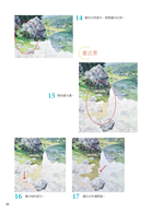 雖然透明水彩大多以暈染和渲染的方式為主流,但本書恰好相反,作者大量使用乾擦、輕乾擦、噴濺等技法作畫。透明水彩其實不像大多數人想像只給人溫柔的印象,作者在書中以剪影和乾擦的方式描繪樹林,表現樹的立體感及透光的樹梢,又或者是以重疊法細膩的將水波紋寫實的表現出來,這些都完整地展現水彩剛柔並濟的特性,只要看過這本書,一定能超越你對水彩的想像!