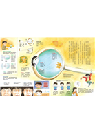■特別要強調的是,這套書完全是用圖像來表現的。因為我們相信:知識性、科學性的讀物,用圖畫更能引起孩子閱讀的興趣,也更能達到理解的目的。所以,每一單元都設計有「漫畫」和「跨頁解說圖」兩部分。「漫畫」部分是將該單元概念轉換成二~四頁的趣味情節,讓孩子在看漫畫中不知不覺得到知識;若能因而激發他深入探究的興趣,則可繼續翻開「跨頁解說圖」,藉由精密寫實的彩圖或實驗,循序漸進的引導文字,解答心中的疑惑,獲得更完整、更清晰的科學知識。