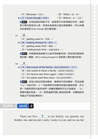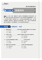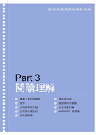 與一般分回提供的模擬試題不同,本書依照詞性、文法概念、文章類型等分類方式,分別整理出同類型的題目,讓讀者能夠集中訓練,也可以針對答錯題數較多的弱點部分進行加強。