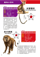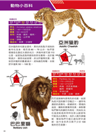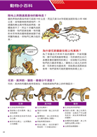 設有「動物小百科」單元,特別介紹猴科動物和貓科動物的構造與小常識,以及有著大鼻子的長鼻猴、喜歡睡在懸崖上的獅尾狒、冬天會泡溫泉的日本獼猴、世界上跑得最快的亞洲獵豹、可能已經在野外滅絕的巴巴里獅、會用後腳站立的喬氏貓等動物的超炫常識,讓小朋友有系統的學習。