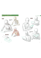 接著,進入對速寫、素描的人體賦予生命的「實踐篇」(第3章)。以日常中平穩的動作,和運動等動感的動作為對象,加以解剖學的解釋與分析。對於幾幅素描,也一併記載步驟。
