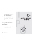 第四章「如何完善公司內部管理制度?」則回頭帶讀者了解,一個要邁向公開發行的企業,需要滿足怎樣的治理規範、公司治理的意義及目的為何。本章集中討論公司治理的內部機制,包含獨立董事、審計委員會與內控制度。