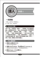 這對喜愛日語的台灣學習者真是一大益處,學起日語感到很親切,並且能從自己的中文認知,推想出一些日語漢字的意思。但是,日語漢字也存在著許多例外!例如:「風流」一詞,在中文裡多半是描述男子到處留情、拈花惹草。但是,在日文的解釋可就大大不同了!風流在日文用於描述人很獨特,或是盡情於詩歌、書畫裡,可是個正面的形容詞呢!由此可知,光利用中文認知來判定日語漢字的意思是滿容易出錯的。因此本書利用中、日的字義介紹,讓學習者清楚了解到兩者代表的意思差異,重新打穩對日語漢字的認知。