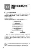 現在價值、未來價值等金錢價值思考法・企業透過投資創造價值・資金提供者——股東和債權人的回饋・投資基準與投資決策的依據:NPV法與折現率。