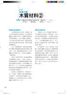 《建築材料》一書,由九位日本神奈川縣橫濱地區之建築家共同執筆,分成五章、110小節,其編排方式係以一頁文字解說,搭配一頁圖解說明方式,以幫助讀者了解各種建築材料特性。本書之住宅結構體主要以柱梁工法(軸組式工法)、框組壁工法(2×4工法)、及原木層疊工法建築為主體,說明其如何搭配不同的建築材料。住宅之省能源、長壽命化係居住者所期待,為達成其目標建築材料之木材、木質材料須經防腐、防蟻處理、耐燃‧防火被覆處理。而在結構體則須考量到耐震、隔震、抗風設計,且整體須有防濕層與氣密層的施作,其施...