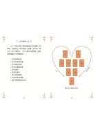 同時保有深入解讀的空間,並收錄原創大型牌陣「心形牌陣占卜」,特別適合占卜師在諮詢中系統性地解析愛情與關係議題。