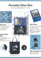 自從在2015年3月雜誌「GINZA」中被當作附錄以來,「OLIVE」在今秋終於用Portable Olive BOX附錄組的方式復出,目前該附錄組是以「隨身攜帶」為主要設計目的,裡面有前口袋設計款的可摺疊收納托特提袋(尺寸為42X35.5X10公分)、棉質的大手帕(尺寸52X52公分)、A4版的特殊內頁設計筆記本和文庫版迷你書的4種商品,迷你書「MESSAGES FROM OLIVE」尺寸為18X11.5公分,有112頁,超幽默的內容將讓讀者重新認識OLIVE的世界,迷你書裡面不僅有當時的時尚寫真,還有當時OLIVE編輯部成員們編寫的詞句,宛如詩人般的言論敘述讓讀者更能理解OLIVE的魅力,而迷你書的封面模特兒近田MARIKO和攝影家恩田義則,兩人全都是當年活躍於OLIVE的要角。迷你書與托特提袋、棉質大手帕全都一起放在收納紙盒內。