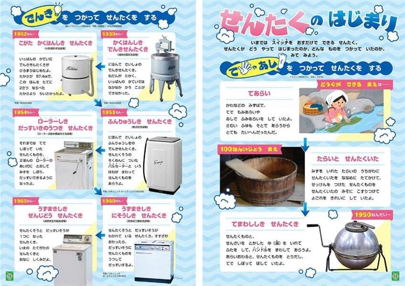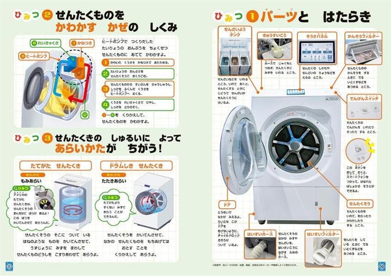 生活上常用的洗衣機,你知道洗衣機的內部構造嗎?你知道洗衣機究竟是利用什麼原理,完成洗衣任務的嗎?「洗衣機趣味遊戲繪本」,就要告訴你洗衣機的歷史,還有洗衣機是怎麼完成洗衣還有烘衣的功能。另外本誌也要告訴你在洗完衣服之後,該如何處理洗好的衣服,還要帶著大家參觀洗衣機的工廠,看看洗衣機是如何被製造出來的。 想要更了解洗衣機就不要錯過本誌的詳細介紹。附贈會發出聲音的洗衣機以及洗衣機專用的洗衣劑,讓你體會真正洗衣服的樂趣。另外還附贈可重複黏貼貼紙,可以和繪本內的遊戲一起遊玩喔。