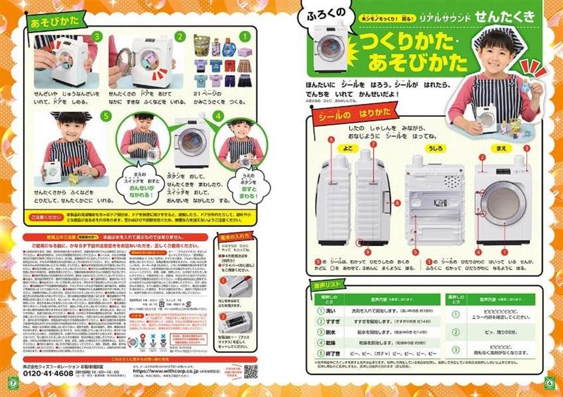 附加商品說明:附贈有聲洗衣機以及洗衣機專用洗衣劑和紙衣服。另外還附贈可重複黏貼貼紙,可以和繪本內的遊戲一起遊玩。