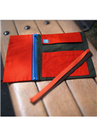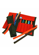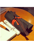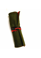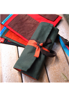 規格:裡面 5個寬筆插,1拉鍊分層;外面有 2條綁繩,卷軸式筆捲。