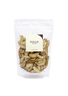 本款「台灣本產牛蒡脆餅」,嚴格選用孕育於台南曾文溪流域、肥碩飽滿的頂級牛蒡為原料。先將整株的新鮮牛蒡削成薄片後,在真空環境下經由低溫乾燥方式緩慢烘焙而成,保留牛蒡的原始風味與豐富的纖維質;爽脆的口感、清雅的香氣,與點到為止的適當調味,使得牛蒡的美味大大提升!製作過程中完全不添加人工色素或防腐劑,是一款健康低卡、且兼具美味的爽口點心!