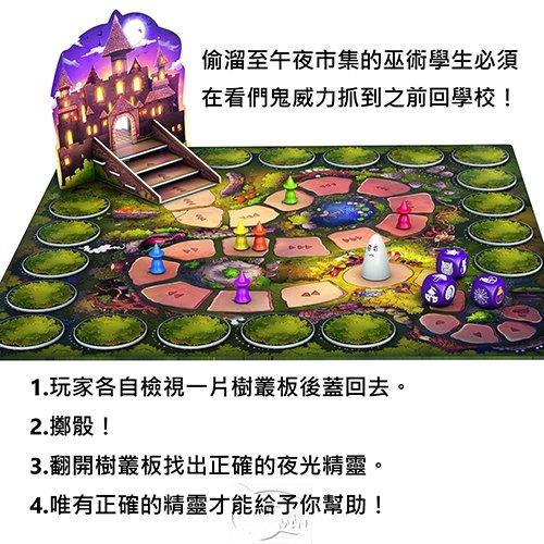 飛天掃帚、會說話的貓和所有的魔法道具都可以在這個神秘的午夜市集找到,當然,只有成年的巫師才能參加這樣的市集!那不是二年級的魔法學生艾米爾、安迪和安娜嗎?這種時候他們應該早就上床就寢了!這些小學生趁著夜色偷偷溜出學校,但看門鬼威利發現了這些調皮的小鬼,正緊追在後,你們必須幫助他們,藉由夜光精靈照亮回程的小徑,讓他們在威利趕上之前抵達學校!