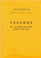 中央政府總預算-歲入來源別歲出政事別預算表及參考表+歲出機關別預算表(1套2冊)106年度(106年1月1日至106年12月31日). ...