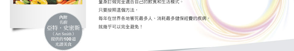 書中收錄有名廚亞特.史密斯(Art Smith)的食譜和烹飪指南,教你做出美味好吃的食物,讓你氣色好、感覺良好。當中的許多道菜還提供有幾個種不同版本,你可以略做調整,以配合自己的需求和喜好。