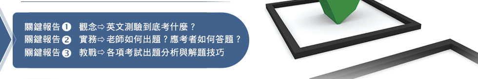 這本書卻是要來處理這兩個心結,討論如何「破解英文測驗密碼」!讓大家一次處理「英文」與「考試」的難題!