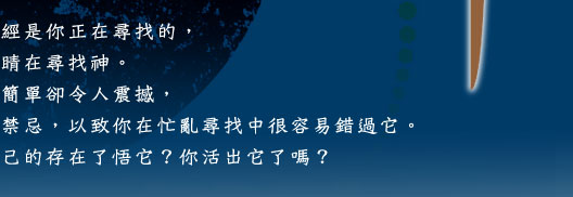 「你身上有某種比太陽更燦爛、比夜空更神祕的東西。你一定曾暗自懷疑過這種東西的存在,但是你是否曾經沉潛至你那充滿奧祕的本質呢?」