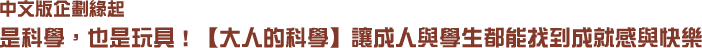 不論你是迷戀於設計的文青,或是超級科學改裝男;你是學生或是老師,或是你像我一樣,只是個「科學路痴」媽媽,相信【大人的科學】中文版,都能帶給你意想不到、物超所值的驚奇與享受。 |