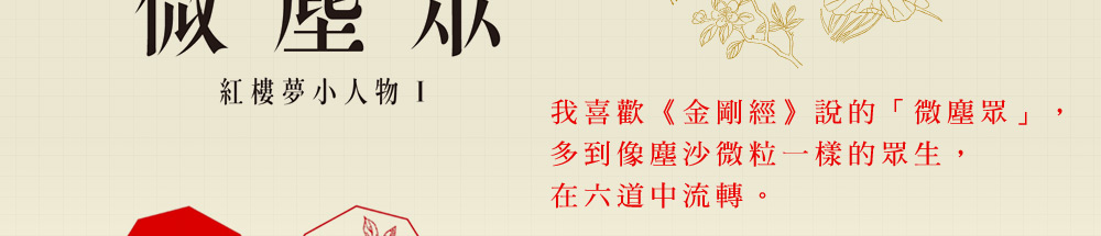 《紅樓夢》這本書中的薛寶釵、林黛玉,談的人都太多了。有時候覺得《紅樓夢》要談的似乎也並不是主角,而是「微塵眾」。是薛蟠,是賈瑞,是馮淵,是香菱,是北靜王,是金榮,是不知名農莊的二丫頭,是地方上的潑皮無賴放高利貸的倪二,是賈雨村做官時在一旁侍候的跟班「門子」。「門子」就是站在門口聽候差遣的衙役僕從,他連名姓都沒有,然而小說讀過,常惦記他的下場。