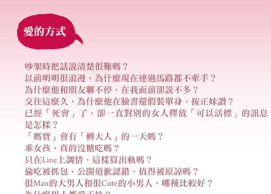 不知道開發社群交軟體的工程師,本身的感情經驗如何?至少,在我的觀察裡,無論「單身」、「已婚」、「穩定交往中」、或「一言難盡」,還是不足以呈現真實感情狀態的多樣性,應該多加點別的。例如:「搞曖昧中」、「正協議分手」、「處於療傷期」……而以上這麼多種感情狀態,情人最在乎的一個就是「穩定交往中」。