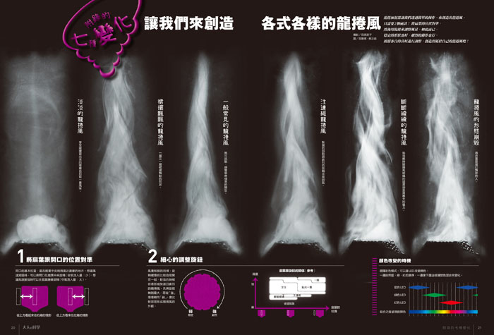 透過氣孔的調整,可製作出六種不同的龍捲風型態,