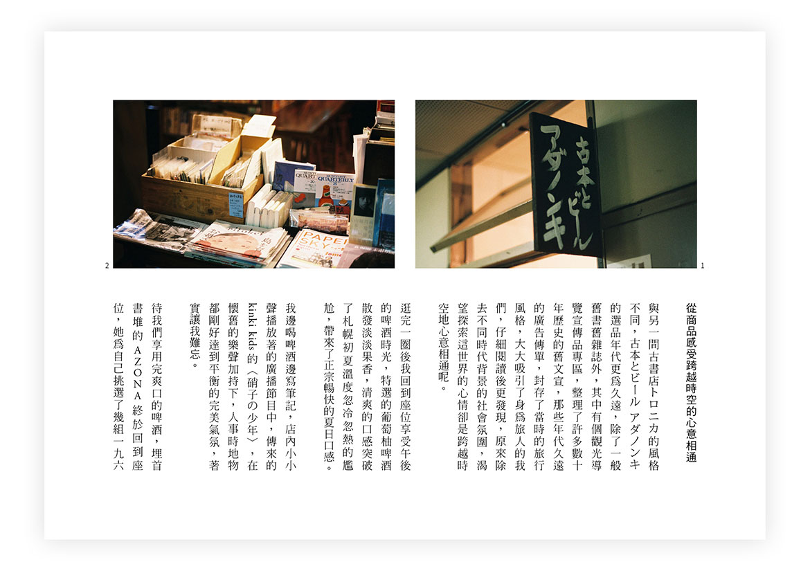 舊大樓的二樓居然藏著一間古本屋,不只有二手書,還有很多相當有年代的旅行傳單,更特別的是,這裡可以點杯啤酒,好好享受一段微醺的閱讀時光。