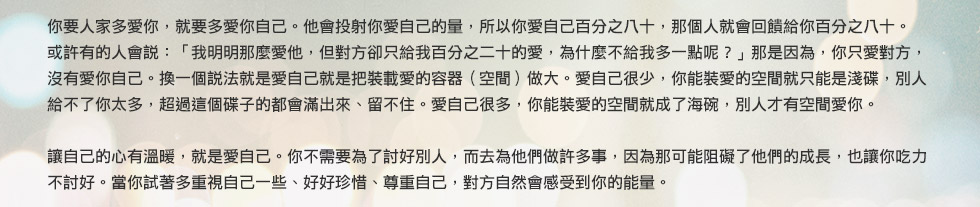 「人不要執著在極致的快樂,也不用害怕悲傷的到來。
