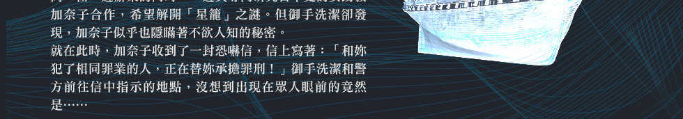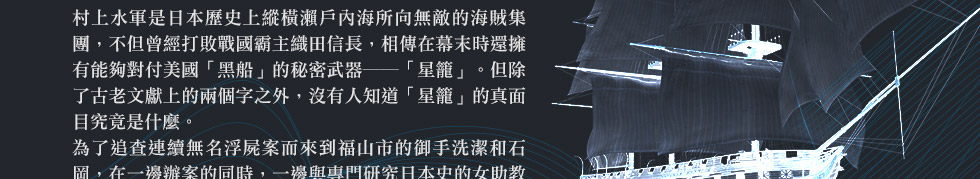 此外,更有紀念意義的是,《星籠之海》的故事發生時間點,是落在《俄羅斯幽靈軍艦之謎》(二○○一)之後,而後者原本是被視為「御手洗‧石岡」連袂演出的最後一案。破案後,御手洗隨即離開日本,前往瑞典斯德哥爾摩的烏普薩拉大學,進行腦科學研究,展開御手洗探案的新頁,挑戰世界各地的謎團。換句話說,現在的《星籠之海》,才是這對搭檔的最終合作。