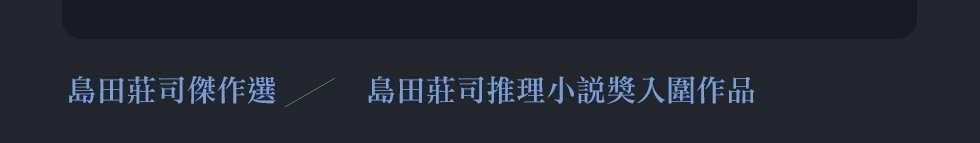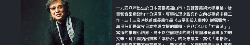 御手洗探案是島田實踐個人創作理念的核心系列,在過去,島田對本格推理的理解,即是極端不可思議的謎團與徹底符合理性的解決。為此,島田不斷設想出橫跨漫長時間軸、橫跨廣大空間軸的謎團,才有了九○年代的「巨篇推理創作期」。