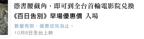 看著別人,總會想起自己。書宇的文字與影像就有這樣的力量。他說的幾乎都是我們熟悉的。百日告別中,女主角前往旅遊景點,希望療傷,同時找回失去的伴侶,當然她沒有完成這些,但完成了一些意想不到的。這不就是每個我們的生活嗎。