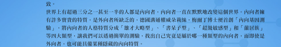 *本章適用於所有類型的內向者