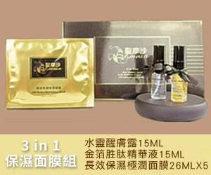 2.金箔胜肽精華液 黃金胜肽X神經醯胺X玻尿酸:形成網狀結構鎖住水分,保持肌膚水潤狀態,減緩細紋的產生,加強肌膚保水度,提高肌膚彈性。銀杏萃取和天然蜂蜜精華含有豐富的氨基酸、醣類和抗氧化物使肌膚透亮柔嫩光滑。