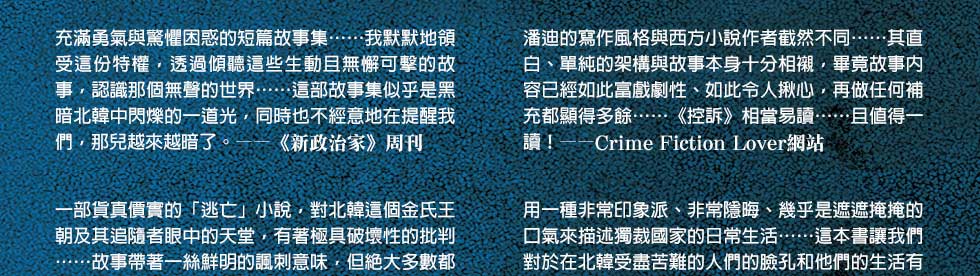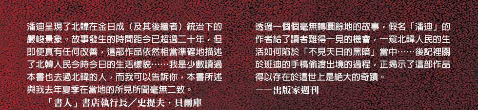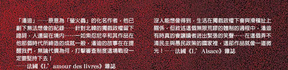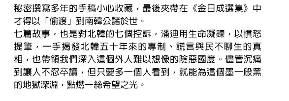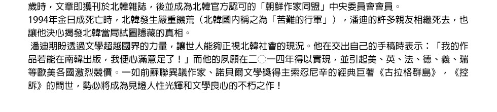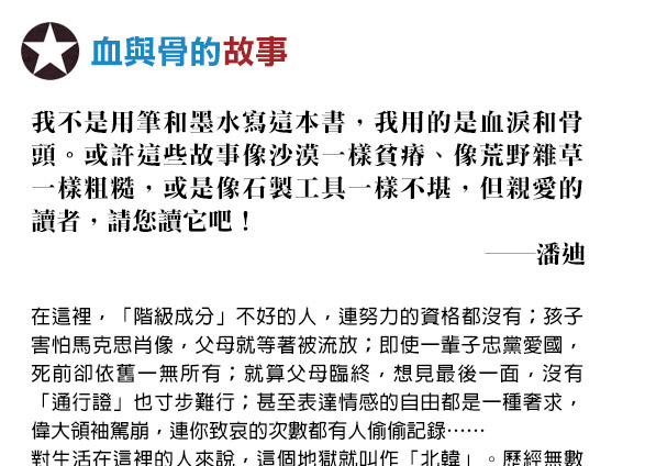 面對「通敵」的質疑,忍不住說出真相的韓京熙,又會招致什麼後果?以骨執筆,以血長書,絕對不能錯過北韓作家潘迪最沉痛的控訴!