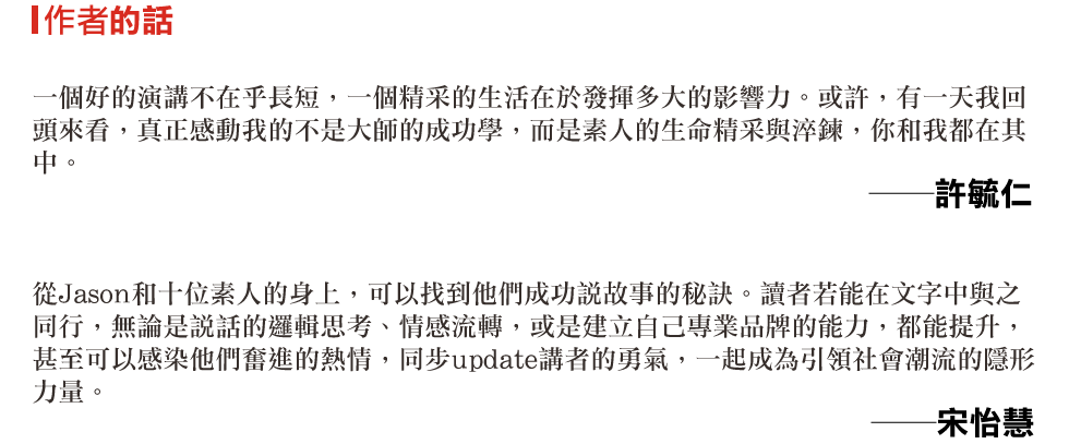 一個家庭的支柱,一段要大展長才的年紀,中年的陸育克卻面臨人生最大的危機:失業。到了中年,才面臨失業的挑戰與考驗,人生應該沒有比這個更讓人錯愕與害怕了。尤其,當身邊的人都在工作上一一闖蕩出名聲時,陸育克的心情也是忐忑不安與徬徨不定的。 一次門鈴響起的機緣,他幫社區的鄰居阿嬤照顧小孫子,正當自己與小小孩大眼瞪小眼、一籌莫展時,他發現大學主修表演藝術的經驗,或許可以拿出來一用,說個故事給孩子聽聽,讓沉悶的時光,來點不一樣的氣氛。沒想到,這一說,就說了八年,這一說讓他成為社區大朋友、小朋友們的聚光燈,天天有人期待陸爸爸替他們說故事。 從此,陸育克揮別失業的陰霾,用自己溫熱的生命開始說故事給大家聽,從孩子的床邊故事說到熱鬧喧騰的大小社區;從校園圖書館說到偏鄉部落的各角落;從醫療診所說到需要的家庭;從親子聽故事說到銀髮族一起來;從當地社區到新住民社區……陸育克說話的魅力如春風拂過人心,帶來了溫暖與力量,讓聽故事的人,跟著他大笑;陪著他哭泣;隨著他悲嘆;學著他歡笑。 一次因緣際會的機緣,卻意外地開啟自己走向說故事的道路,藉由說故事,教會大孩子、小孩子說故事,增近彼此的關係。 我們是不是該感謝阿嬤的一次意外門鈴聲,讓台灣多了一位愛說故事、會說故事的孩子王陸育克?蹲低是為了下一次躍起:上台前的準備