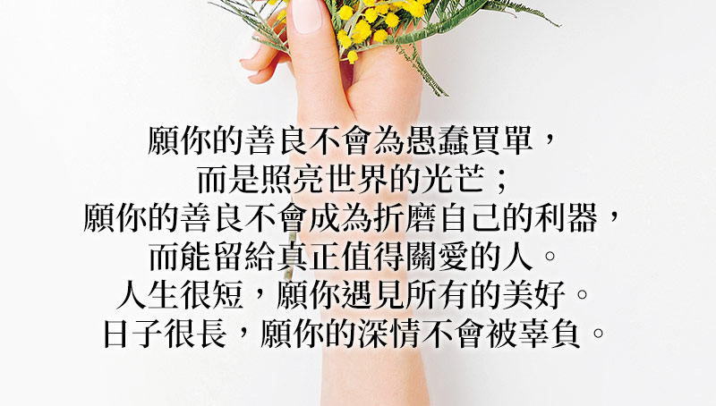 我們中的許多人,也常常打著「為你好」、「也希望你幸福」的旗號,但就算你是真情實意的,可是在別人死了心,決定在自己的生活裡安心享受一切的時候,最大的愛意,莫過於不評價,也祝福他們的幸福。