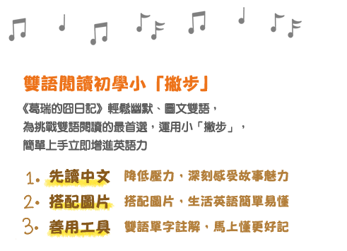 什麼樣的閱讀,可以讓大人小孩都輕鬆悅讀、開懷大笑,又可以同步學習語言與文化?「葛瑞的囧日記」裡有所有的答案。