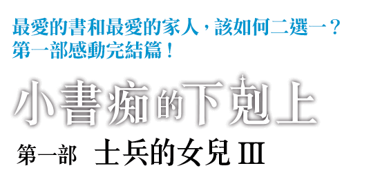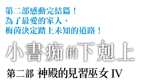 卡斯泰德提醒後,羅潔梅茵「嗚」地輕吸口氣,神情嚴肅地小聲唸了好幾次「父親大人」,練習讓自己叫得自然一點。低頭看著那個為了保護自己的家人,勇敢投身進貴族社會的嬌小身影,卡斯泰德暗暗嘆氣。一旁斐迪南屏退了所有人,在房間中央攤開畫有魔法陣的紙張。羅潔梅茵不解地歪著頭,打量起魔法陣。