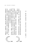 然而我的工具書和教科書卻洋溢著自大的篤定,因為它們絕口不提那些懷疑和失敗的嘗試,不提那些疑惑和走錯的路,不提錯誤的假說和理論,不提歷史中那無數次繞路而行,圍繞著通往認知的小徑。那些教科書把公式、定理和現象當成不可動搖的真理傳授給我們,當成無需追問的絕對事實。畢氏定理就像一條教義,世世代代的學生滿心敬畏地臣服於學校的考問,在這個考問中不是「對」就是「錯」。在數學計算上只有唯一一種方法,如果你選擇另一種方法,說不定還能更快算出答案,你就有被退學的危險。我們不是在學習,我們是在惡補,就算在學校裡待了二十年,大多數的人就連最簡單的問題也答不出來:「一面鏡子要有多大,才能把整個人照進去?」(在這本書裡我會告訴你!)