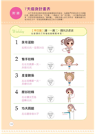 ◎7天密集「肩胛骨塑身計畫」,分為【平日篇】、【假日篇】、【隨時篇】,7天有規劃的運動比不上一個月賣力的節食,只要一週,就能感受身體的改變!