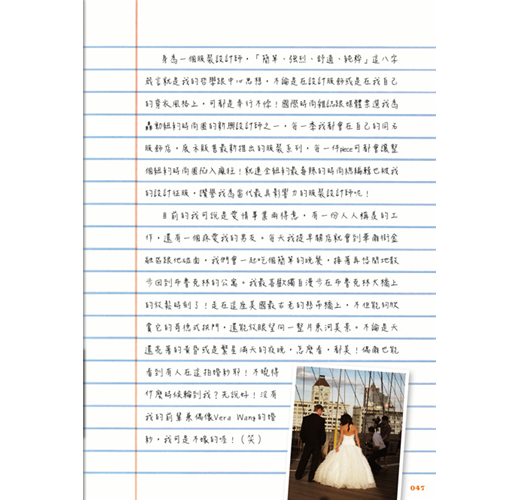 紐約街頭就是一本最新出刊的流行時尚雜誌,從來來往往的紐約客們身上可以快速捕捉最新的時尚趨勢。本書以紐約為背景舞台,藉由米粒Q在紐約的21日奇幻異想,除介紹紐約必遊必去必吃必買的特色小店外,也以不同職業角色帶出不同類型的穿搭風格示範,讓每天都仿若是一場最時尚的變裝舞會。