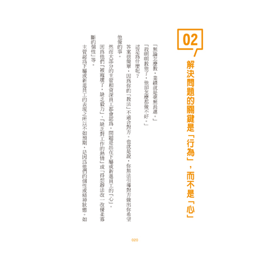 但是我必須說,只要你這麼想,就很難解決問題。因為毫無心理學或精神醫學專業知識的上班族,每天要處理大量的工作,誰有辦法可以矯正下屬或新進員工的「心」?