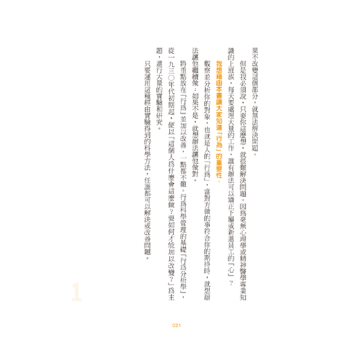 作者曾前往美國,學習以科學方法分析人類行為的行為分析學和行為心理學。這個方法獲得包括美國太空總署和波音公司在內的六百多家公司採用,在美國的企業界創造出絕佳的成績。