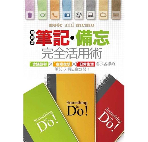 本書齊全蒐羅各式各樣的筆記&備忘活用技巧,從種類與型式開始,從橫線、方眼、空白筆記本、行事曆、便利貼……的作用開始介紹,不同的筆記本就有不同的作用,只要運用各自的優勢,就能提高工作效率。