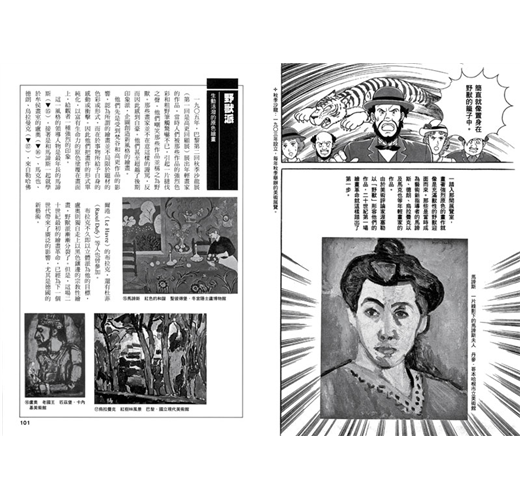 所有當代名家,從梵谷、塞尚、馬諦斯到超現實名家,如米羅、曼˙雷、達利、畢卡索的生平故事,全都以漫畫方式重現。而當代藝術史中的重要運動,包括:新藝術、野獸派、未來派、超現實主義、構成主義、普普藝術、行動藝術、地景藝術、裝置藝術等名詞,全以經典名作,深入淺出說明。