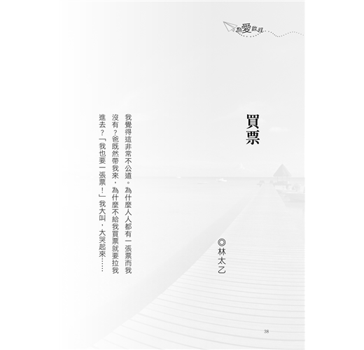 而在馬拉松式的編選、賞析作業過程後,以品德教育為主題的文集《人間愉快》,已在去年完成並出版;如今,你手上拿的這本《為愛啟程》,則是以公平正義為主題的另一本文選。