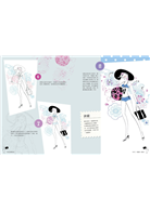詳細介紹每種繪圖工具的特性,並教你如何靈巧應用繪圖工具,將之發揮到最佳屬性。並介紹時裝圖中的模特兒身體上的比例、不同臉部表情、髮型、妝容、配件(內衣、飾品、包包ect.)的基本畫法,再詳細介紹各種衣服材質、皺摺、明亮、布料印花色系上的搭配畫法。