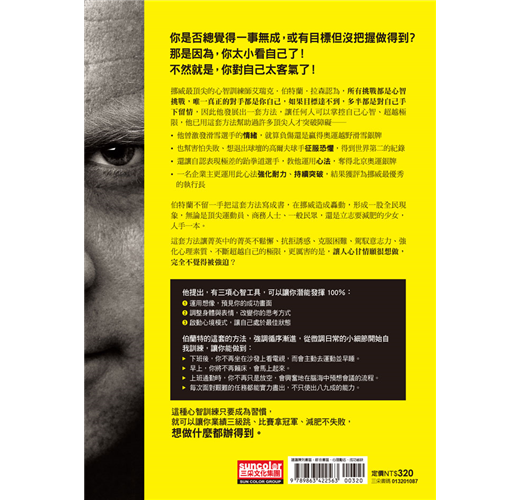 挪威最頂尖的心智訓練師艾瑞克.伯特蘭.拉森認為,所有挑戰都是心智挑戰,唯一真正的對手都是你自己。如果目標達不到,多半都是對自己手下留情,因此他發展出一套方法,讓任何人可以掌控自己心智、超越極限,他已用這套方法幫助過許多頂尖人才突破障礙──